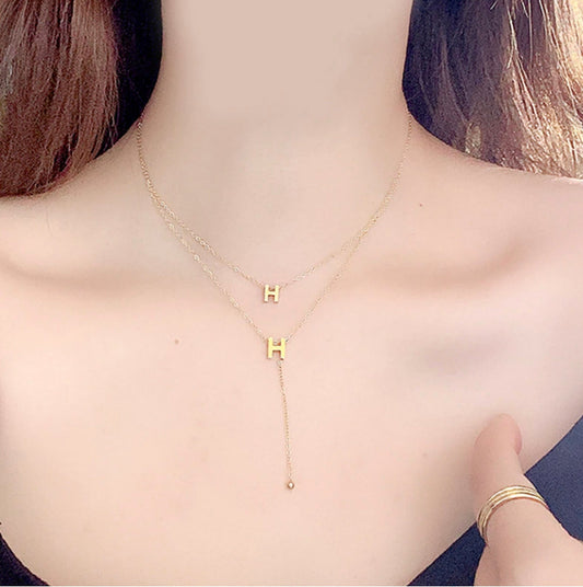 Designer Inspired Layered Initial H Necklace, Gold Plated Stainless Steel Luxury Necklace
