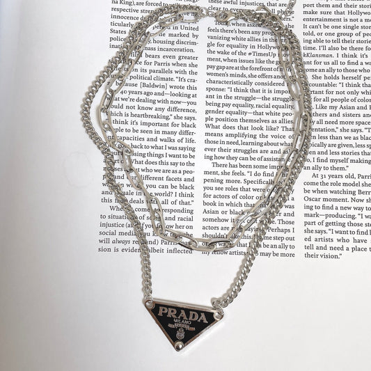 Repurposed Authentic Classic Triangle Logo Tag Layered Necklace