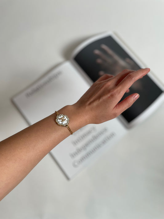 Repurposed Authentic Designer Charm Gold Plated Bracelet, White Clover