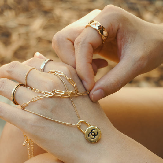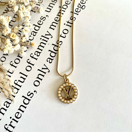 Repurposed Authentic Designer Button Gold Plated Necklace
