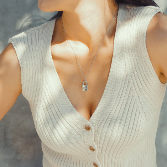 Repurposed Authentic Designer Zipper Pull Rhodium Necklace
