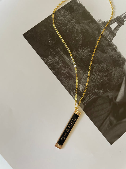 Repurposed Authentic Designer Zipper Pull Gold Plated Bar Necklace