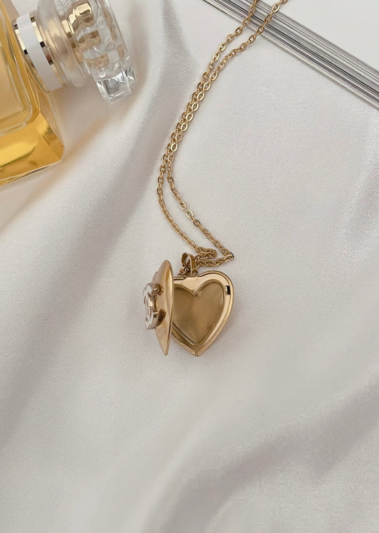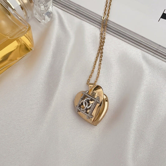 Repurposed Authentic Designer Button Gold Plated Heart Locket Necklace