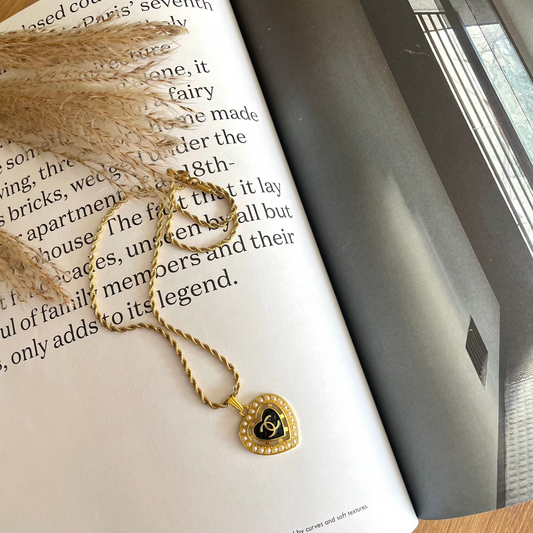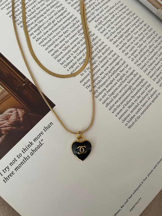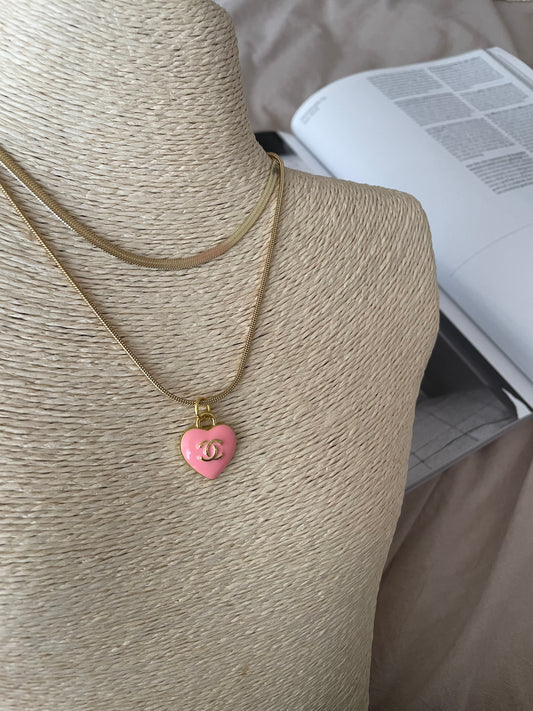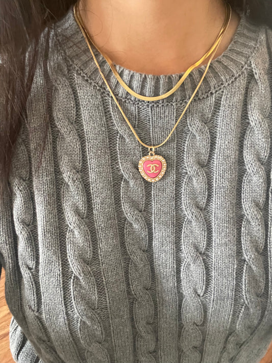 Repurposed Authentic Designer Button Gold Plated Heart Necklace