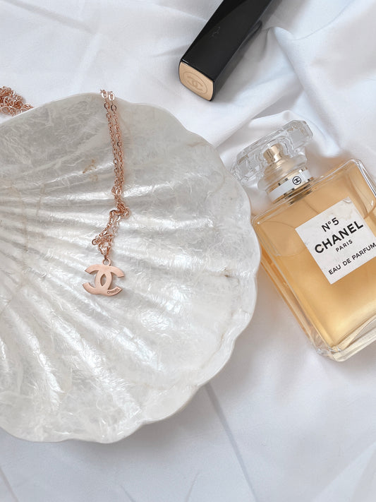 Repurposed Authentic Designer Button Rose Gold Plated Necklace