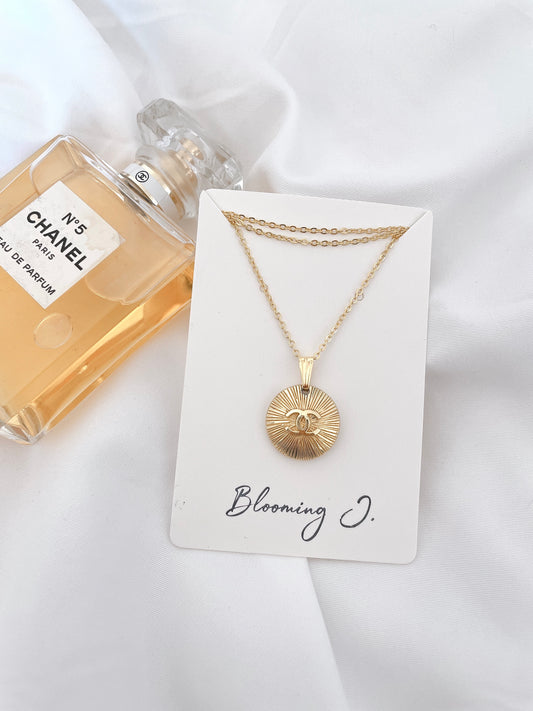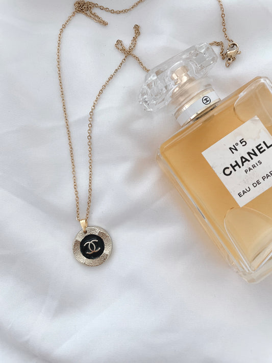 Repurposed Authentic Designer Button Gold Plated Necklace