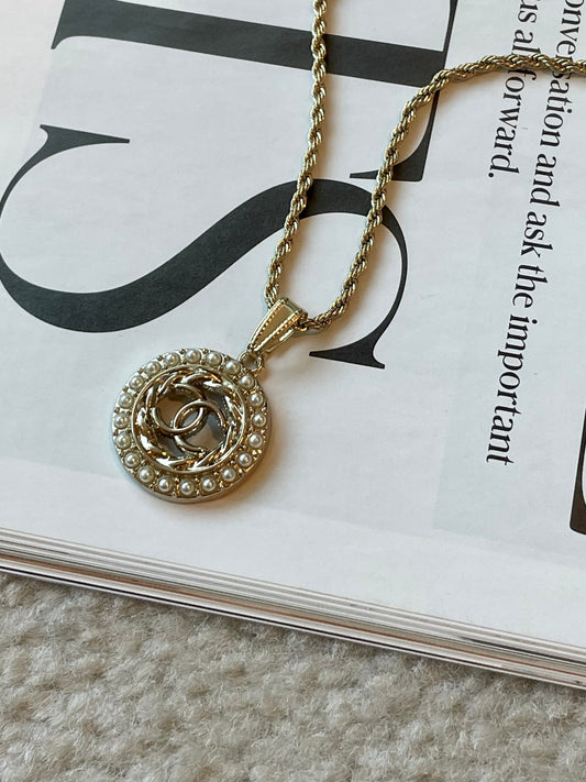 Repurposed Authentic Designer Pearl Button Gold Plated Necklace