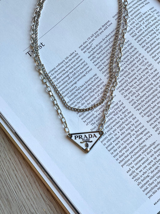 Repurposed Authentic Classic Triangle Logo Tag Layered Necklace