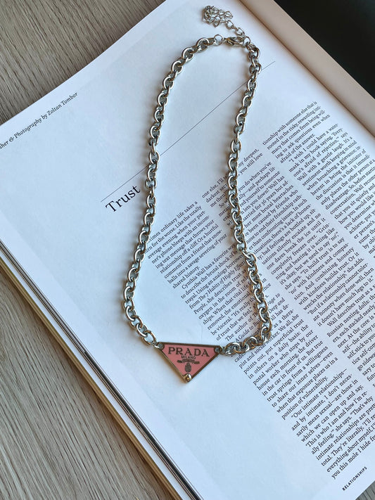 Repurposed Authentic Classic Triangle Logo Tag Necklace