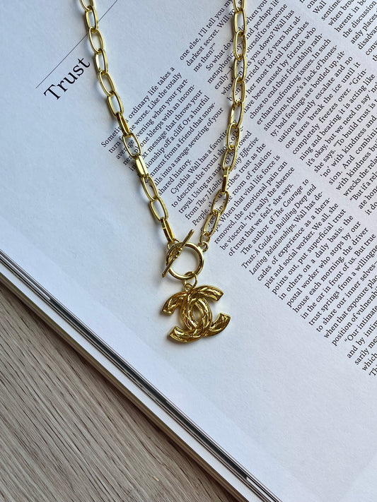 Repurposed Authentic Designer Button Gold Plated Necklace