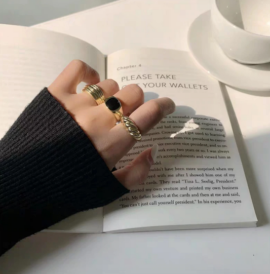 Quilted Adjustable Statement French Minimalist Gold Plated Ring