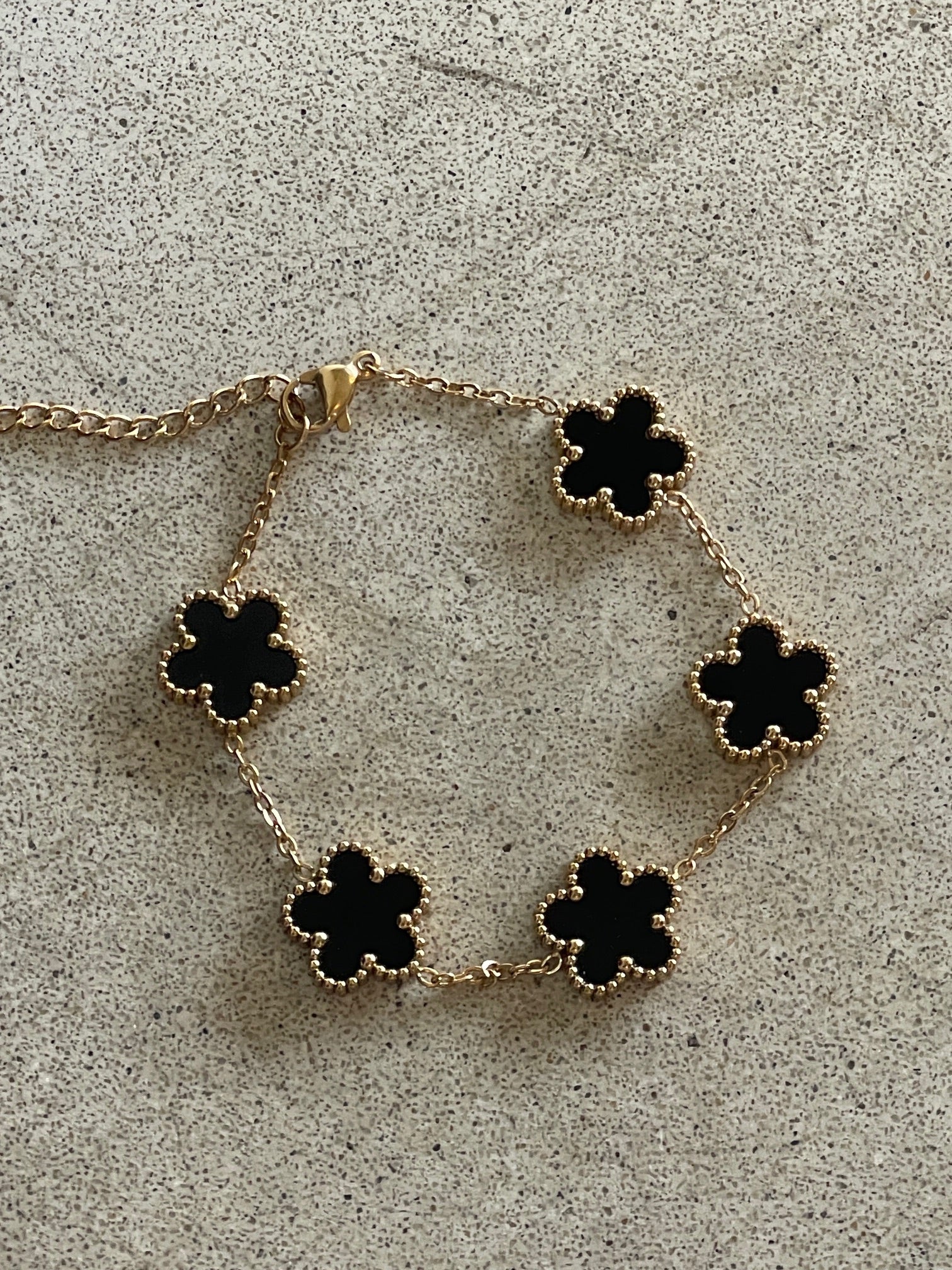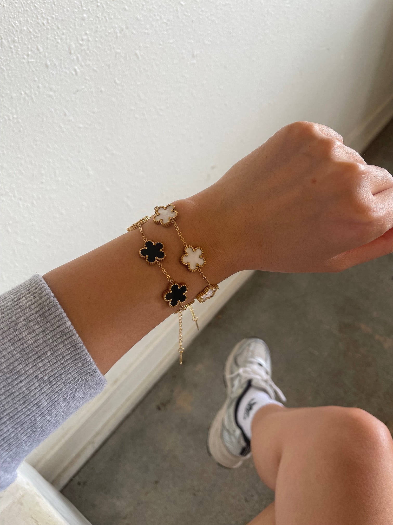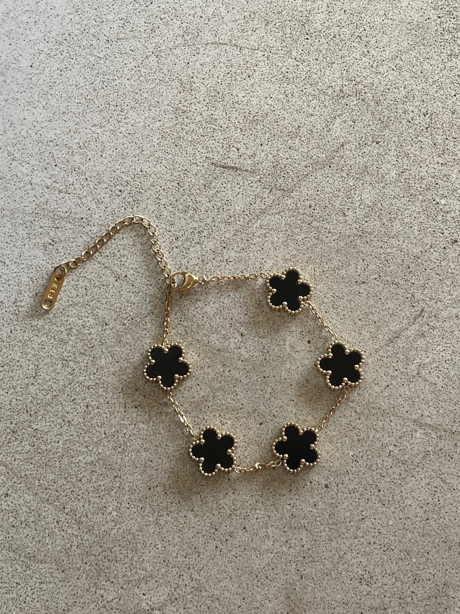 18K Gold Plated Stainless Steel Adjustable Five Petal Clover Bracelet