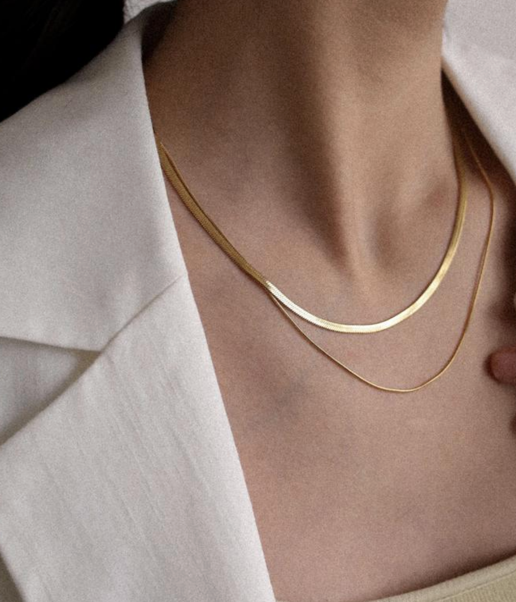 18K Gold Plated Herringbone Snake Chain Double Layered Necklace